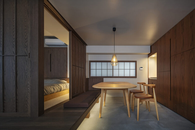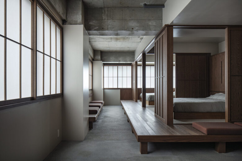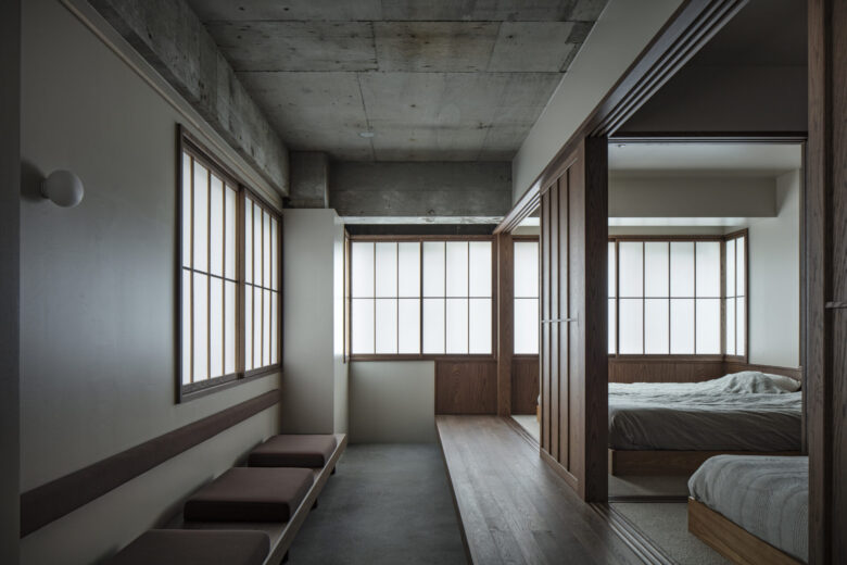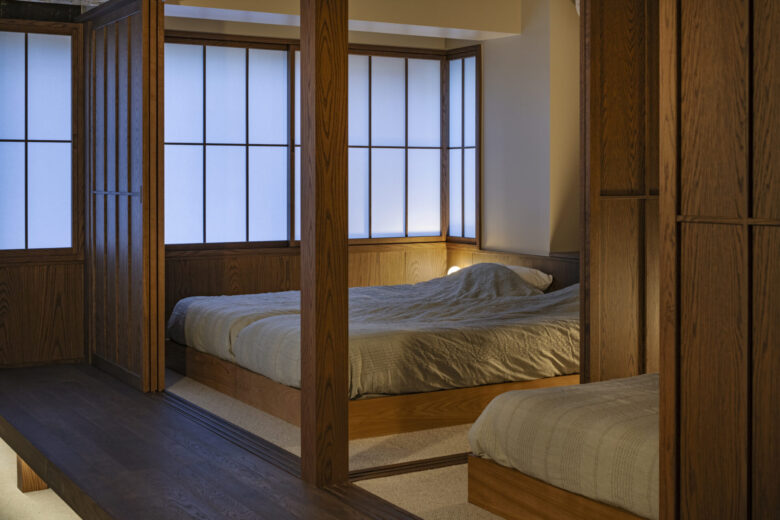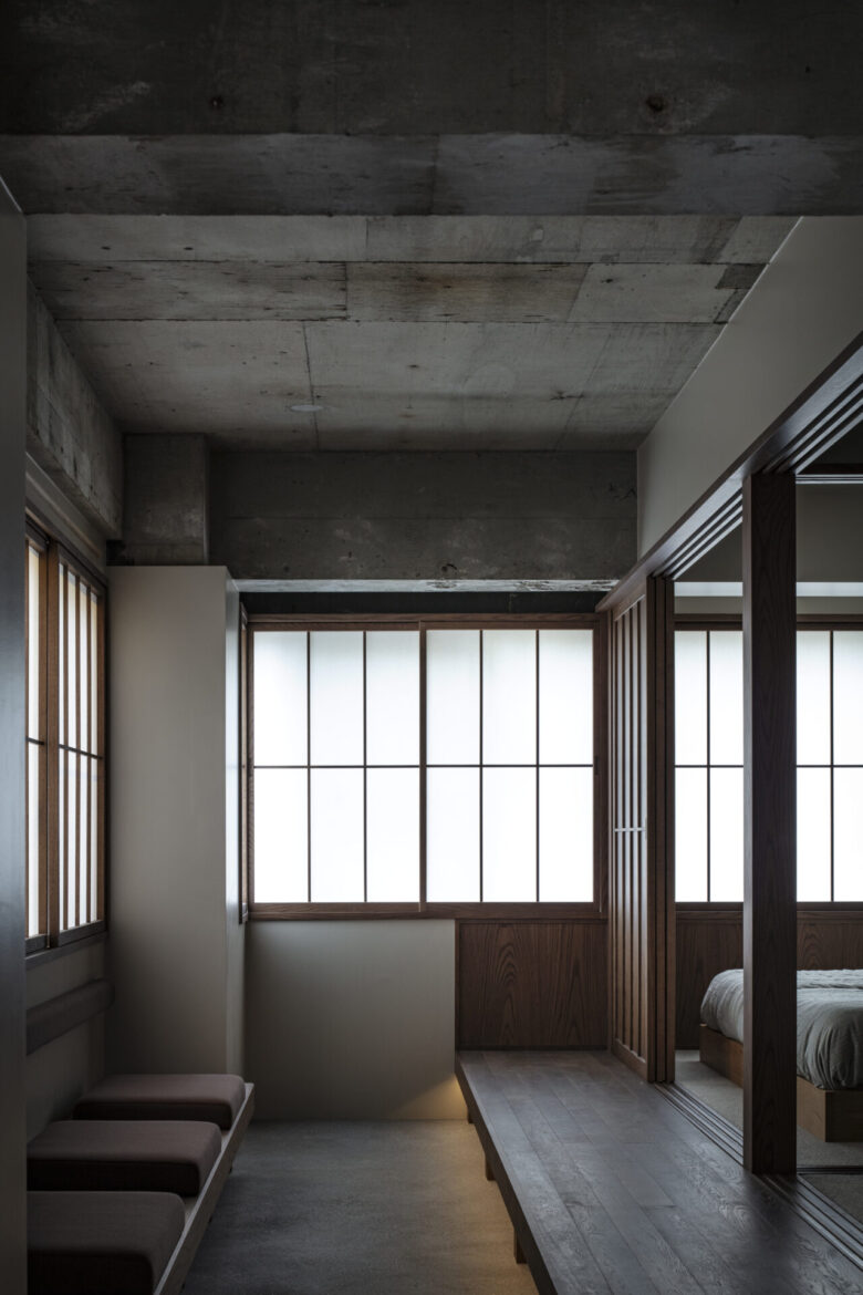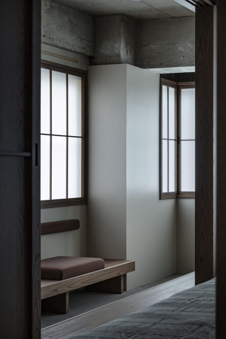 Proposed as a space familiar to anyone – regardless of nationality or generation – the project offers a stay enveloped in a uniquely Japanese sense of subtle elegance and comfort. The flexibility of connecting rooms through sliding partitions, the soft light filtering through shoji screens, and elements such as a raised bench nestled between the doma and the bedroom all reinterpret traditional spatial concepts. Together, they cultivate a diversity of places to inhabit, enriching the experience within a limited space.